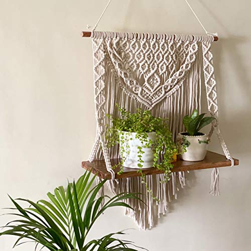 Gullak - مكرمية بوهو للتعليق على الحائط مع رف خشبي من جولاك - - بساط حائط منسوج - ارفف تعليق - وتد 22 × 20 27 انش .