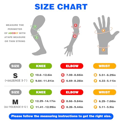 - منتجات خفيفة الوزن وقابلة للتعديل - على الرغم من حمايتها القوية، فإن الواقيات الخاصة بنا خفيفة الوزن، مما يضمن عدم شعور الأطفال بالثقل عند الحركة. بالإضافة إلى ذلك، فهي قابلة للتعديل لتناسب مجموعة متنوعة من المقاسات والأحجام: مقاس S: الأفضل للأطفال بوزن أقل من 30 كجم وعادة ما يكون عمرهم من 3 إلى 7 سنوات. المقاس المتوسط M: مصممة لأولئك الذين تتراوح أوزانهم بين 30-50 كجم وعادة ما تتراوح أعمارهم بين 8-12 سنة. (يرجى التحقق من جدول المقاسات الخاص بنا في الصورة التفصيلية للحصول على مقاسات أكثر دقة).