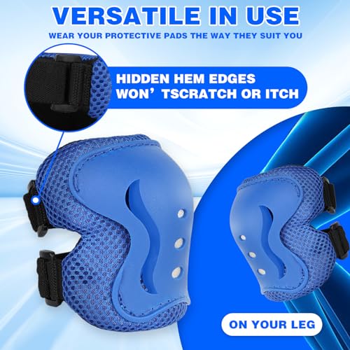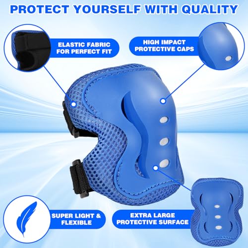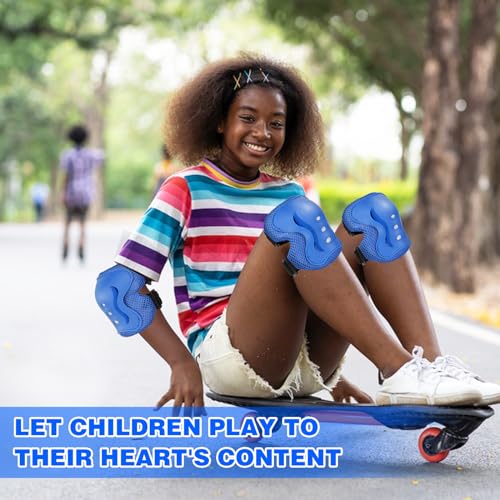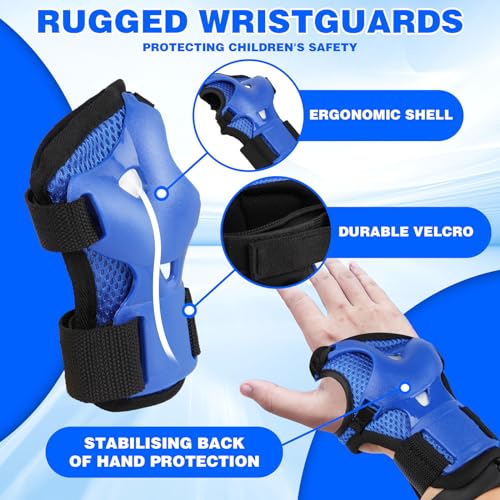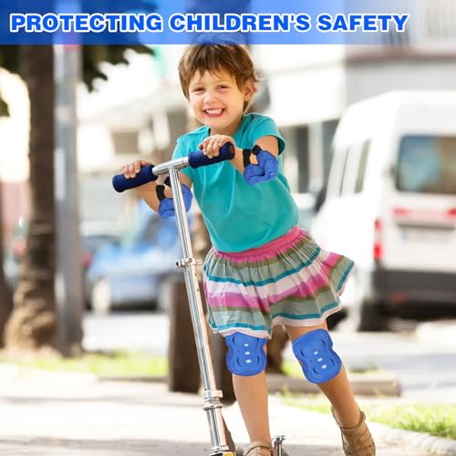 Gullora - معدات حماية وسلامة للأطفال الأولاد/البنات للوح التزلج/الباتيناج/السكوتر/ركوب الدراجات وغيرها من جولورا لعمر 3-12 سنة، واقيات ركبة قابلة للتعديل، واقيات كوع، واقيات معصم (أزرق، S (عمر من 3-7))