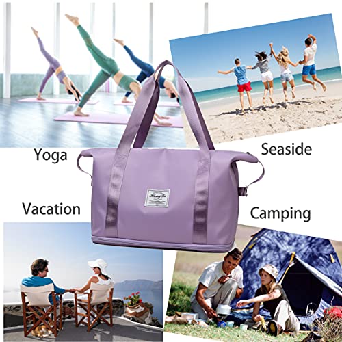 Guncore - شنطة يد نسائية مناسبة للسفر والرياضة وممارسة التمارين واليوجا والخروج اثناء العطلات، شنطة كتف بمساحة كبيرة قابلة للتوسيع, بنفسجي, Large، من جونكور