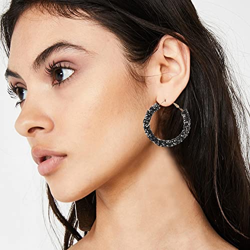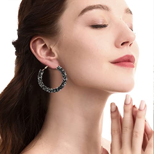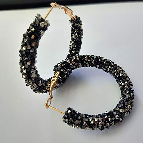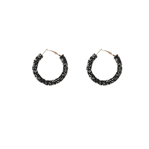 GUOXIAOMEI - اقراط حلقية دائرية لامعة بتصميم بوهيمي لامع مرصع باحجار الراين متدلية ملفوفة للنساء والفتيات كريستال أسود