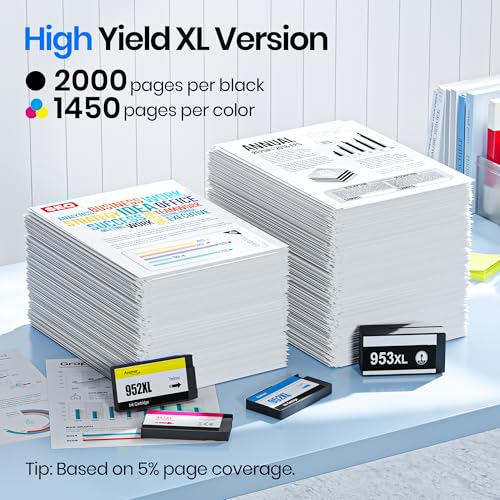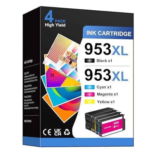 Gureef - خراطيش حبر 953XL من جوريف بديلة لخراطيش حبر اتش بي 953 XL لطابعات اوفيس جيت برو 7740 7720 8740 8730 8725 8720 8710 8218 8210 7730 8715 (اسود سيان ارجواني ماجنتا واصفر، 4 قطع)