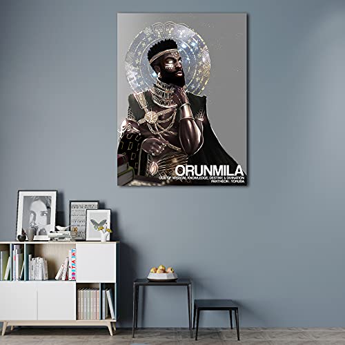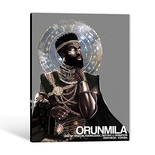 GUTTATY - جوتاتي لوحة فنية جدارية من القماش بتصميم امريكي افريقي - لوحة فنية سوداء من القماش بتصميم تاج الله لتزيين الحائط، عمل فني مؤطر لغرفة النوم وغرفة المعيشة، جاهزة للتعليق (28 × 40 انش)