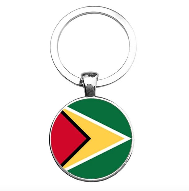 Generic - سلسلة مفاتيح بتصميم علم دولة غويانا الوطني الثلاثي الألوان، حلقة مفاتيح معدنية فضية تذكارية لمشجعي فريق كرة القدم