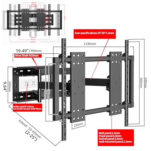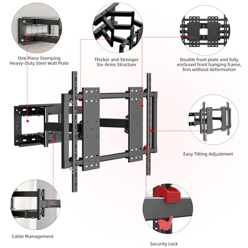 - قوي ومتين: الأذرع الستة المفصلية لحامل التلفزيون مصنوعة من فولاذ مدلفن على البارد، والإطار الأمامي قطعة واحدة مغلقة بالكامل لزيادة الصلابة. كما أن اللوح الخلفي المصنوع بالضغط المتكامل يسمح بتجنب مقابس 86 × 86 ملم، ويمكن تركيبه في غرفة المعيشة أو النوم أو المطبخ أو المكتب.