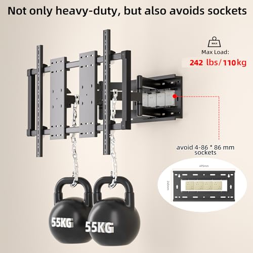 GUZHIKU - حامل تلفزيون جداري قوي فائق النحافة للشاشات من 50 حتى 120 بوصة بوزن أقصى 82.5 كجم من جوزيكو، متحرك بالكامل مع ميلان، دوران، تمديد وتعديل المستوى، تجنب المقابس، أقصى فيسا 1000×600 ملم، أسود، موديل Y10