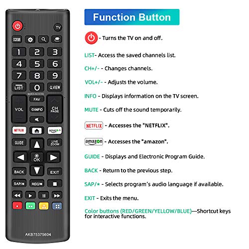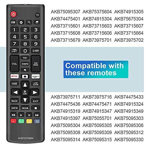 - متوافق مع ريموت كنترول موديل AKB73615362، AKB74115502، AKB73615303. يمكنها التحكم مباشرة في موديلات 99% من أجهزة تلفزيون ال جي (LCD-LED-بلازما).