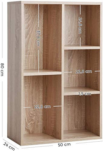 - مكتبة كتب ذات 5 أقسام تخزين لحفظ الكتب وأقراص DVD وأقراص CD والنباتات المزروعة والديكورات، وحجرتان كبيرتان مثاليتان لتنظيم الملفات في مكتبك