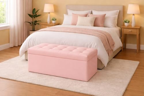 GX GARGIX - مقعد تخزين مخملي مستطيل الشكل من جي اكس جارجيكس، مقاس 76 × 38 سم مبطن (DLEVV-بينك)