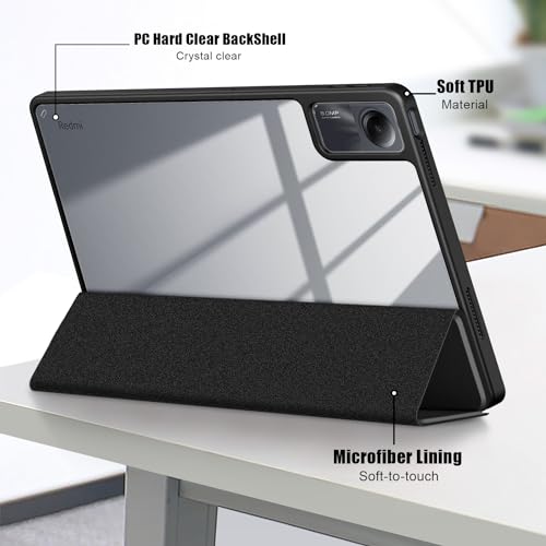 Gylint - جراب شاومي ريدمي SE شاشة 11 بوصة 2023، غطاء هايبرد رفيع [حامل قلم مدمج] غطاء مضاد للصدمات مع غلاف خلفي شفاف من جيلنت، أسود
