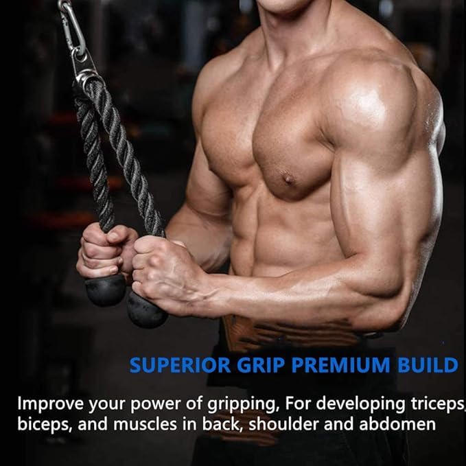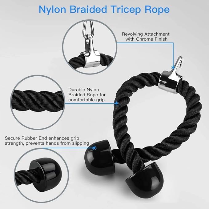 - 【أطراف غير قابلة للانزلاق】: أطراف مقبض حبل ثلاثية الرؤوس مصنوعة من كتل مطاطية غير قابلة للانزلاق للمساعدة في الإمساك وضمان تناسق التمرين، مع الشعور بالراحة في اليد.