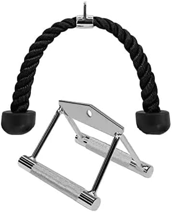 Generic - طقم ملحقات مقابض أجهزة الكابلات الرياضية، يضم حبل تمرين العضلة ثلاثية الرؤوس وقضيب التجديف يتميز بمقابض محززة ذات ملمس بارز وطلاء نهائي من الكروم