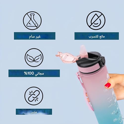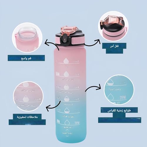 Generic - زجاجة مياه للاستخدام اليومي وصالة الالعاب الرياضية - 1 لتر مع مؤشر وقت وقشة للاطفال والكبار، مثالية للمنزل والمدرسة والمكتب وصالة الالعاب الرياضية باللونين الزهري والازرق