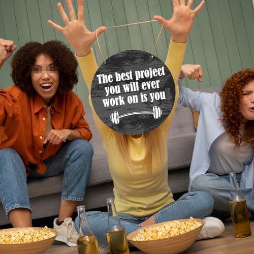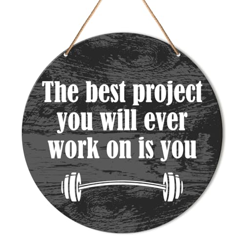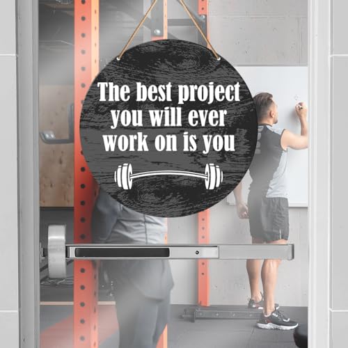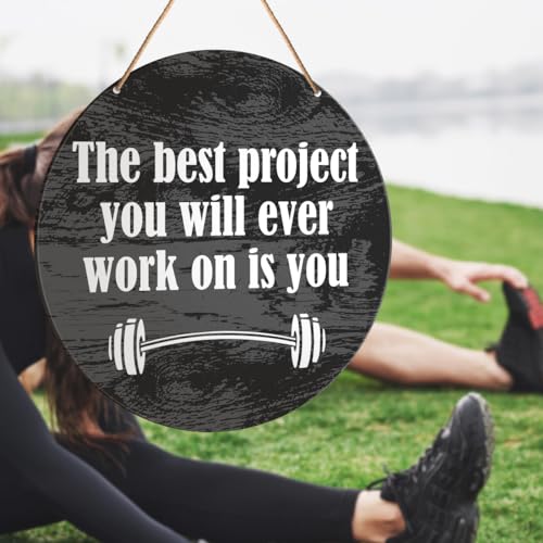 Muktoujaumai - لافتات تحفيز الصالة الرياضية، ديكور حائط ملهم للمنزل وصالة الالعاب الرياضية، لافتات معلقة ريفية للمكتب واللياقة البدنية وغرفة التمرين، افضل مشروع سوف تعمل على الاطلاق هو يو