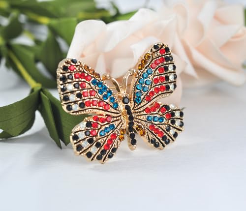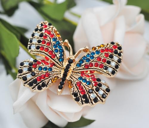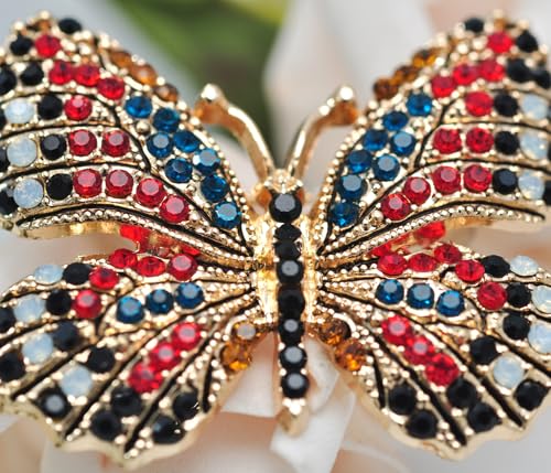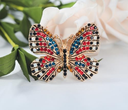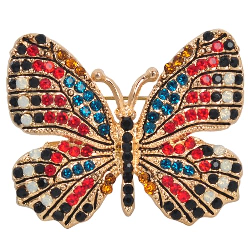 Gyn&Joy - دبوس بروش على شكل فراشة مجنحة من حجر الراين الكريستالي متعدد الالوان BZ030، كريستال، كريستال