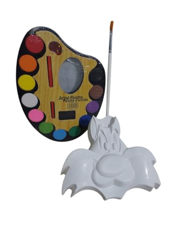 - باليت ألوان مائية: تتضمن الباليت مجموعة متنوعة من 12 لونًا مائيًا زاهيًا، تشمل الأحمر والأزرق والأصفر والأخضر والبرتقالي والأرجواني. الألوان آمنة للأطفال للاستخدام وسهلة المزج لتكوين ألوان جديدة.