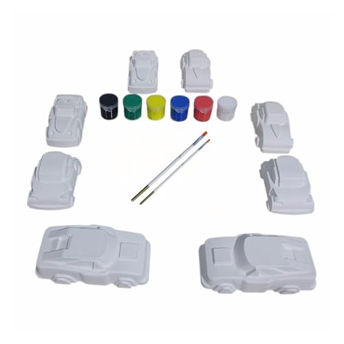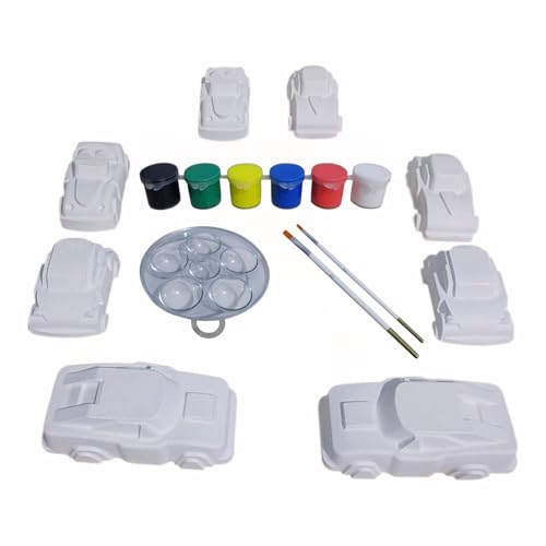 Generic - لعبة جبس للتلوين على شكل 8 سيارات حديثة و6 ألوان أكريليك تتضمن فرشاتين إضافيتين وباليت مزج، مجموعة فنية كاملة (17 قطعة) لاستبدال الشاشات وتنمية مهارات الأطفال