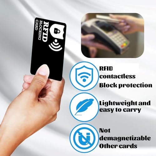 - تصميم رفيع للغاية: يبلغ سمكه 0.1 سم فقط، تم تصميم واقي البطاقات هذا ليتناسب بسلاسة مع أي محفظة أو حامل بطاقات؛ يضمن الحجم الصغير حماية كاملة من تحديد الهوية بموجات الراديو دون إضافة حجم إلى أساسيات الحمل اليومية الخاصة بك
