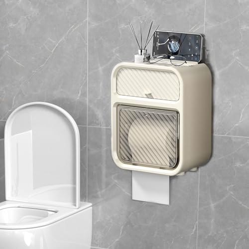 Gzsekken - حامل ورق تواليت مع درج تخزين، يثبت على الحائط، ذاتي اللصق، مقاوم للماء/مقاوم للغبار/مقاوم للقطط، بلاستيك إيه بي إس من جي زي سيكين