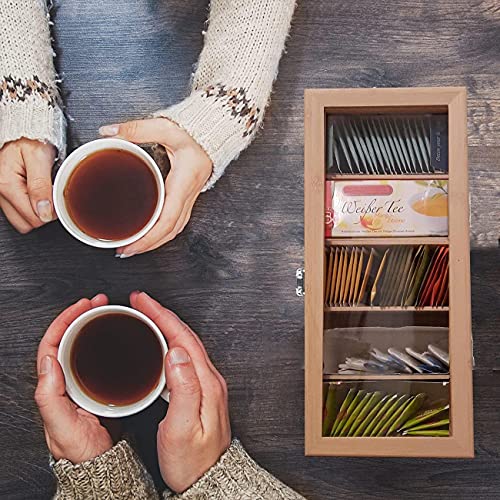- علبة الشاي العملية مع 5 مساحات تخزين توفر مساحة كبيرة لأنواع مختلفة من الشاي. بفضل الغطاء المفصلي مع نافذة العرض الكبيرة، يتم الحفاظ على الرائحة للاستمتاع بالشاي الرائع في المنزل أو في المقهى.