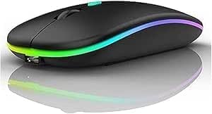 Generic - ماوس لاسلكي W10 رفيع ثنائي الوضع باضاءة LED يدعم بلوتوث 5.1 وUSB بتردد 2.4 جيجا هرتز مع مستقبل قابل لاعادة الشحن بمنفذ USB من اتش بي