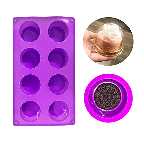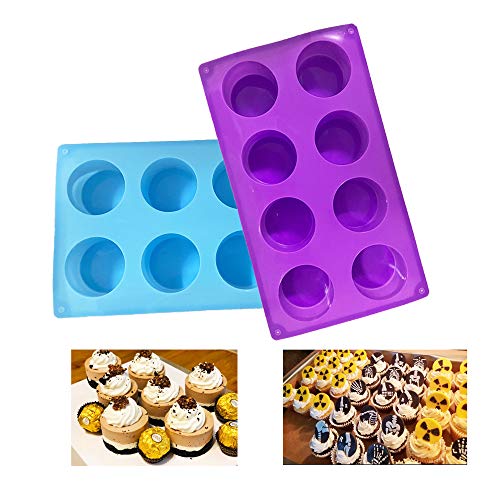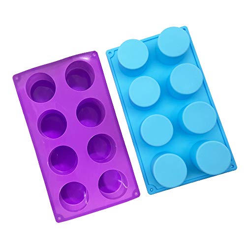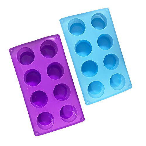 H-Gamely shop - (عبوة من 2) قالب سيليكون بـ8 تجاويف دائري للصابون، الكعك، الخبز، الكب كيك، التشيز كيك، خبز الذرة، المافن، البراوني والمزيد - لون ارجواني ازرق