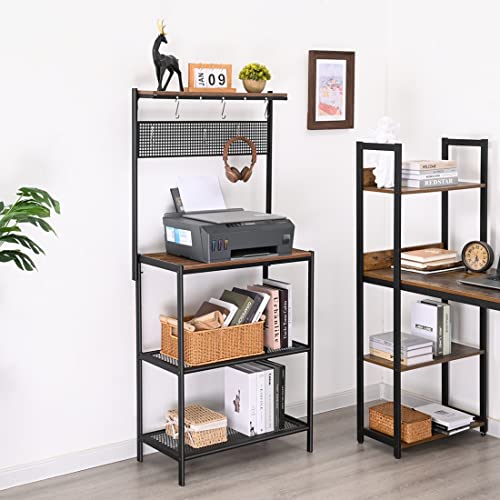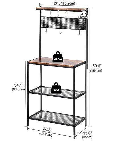H JINHUI - رف خبز للمطبخ من اتش جينهوي حامل فرن ميكروويف صناعي رفوف مطبخ قائمة بذاتها وحدة توابل وأواني مع 6 خطافات أرفف تخزين 3 طبقات إطار معدني 154 × 35 70 سم خشب مُصنع أسود