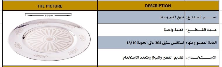 Home and Kitchen Art - طبق فطير وسط مقاس 35 سم عرض ستانلس ستيل H&k Art