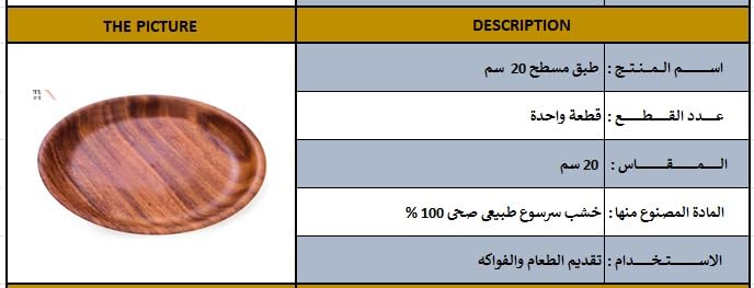 - طبق خشبي مسطح عادي 20سم