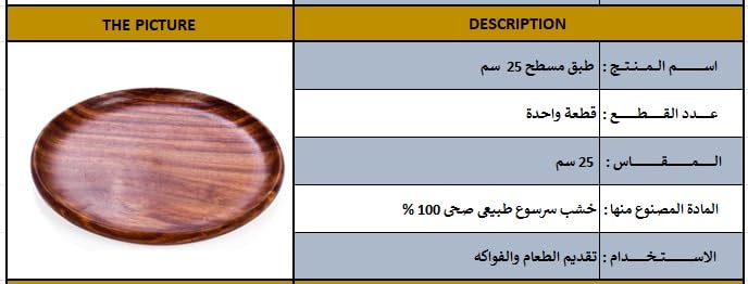 Home and Kitchen Art - طبق خشبي مسطح عادي 25 سم H&k Art