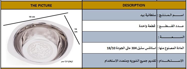 Home and Kitchen Art - سلطانية بيد مقاس 16 ×18 سم عرض 4.5 سم ارتفاع ستانلس ستيل H&k Art