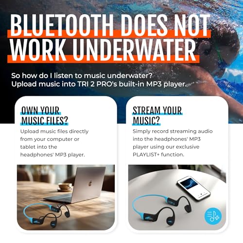 H2O Audio - سماعات رياضية متطورة تري 2 برو مقاومة للماء بتقنية بون كوندكشن والأذن المفتوحة، بلوتوث 5.3 للجري وركوب الدراجات مع تنسيق ام بي 3 وتصنيف IPX8، ذاكرة 8 جيجابايت، بتطبيق بلايليست+ من اتش2او اودي