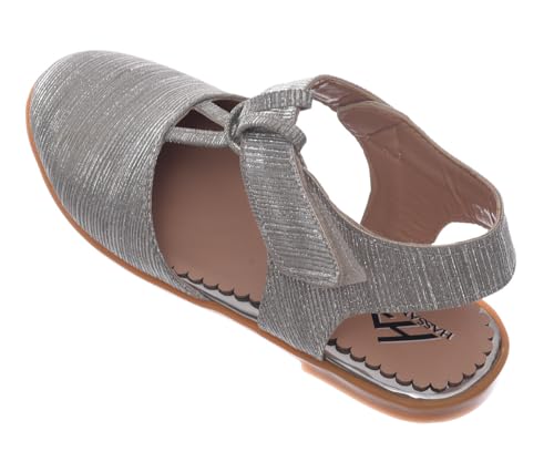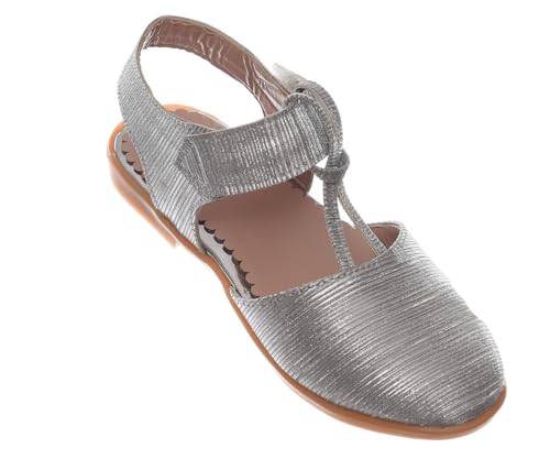 HA - اتش ايه حذاء باليرينا فلات لامع للبنات بنمط مموج وإغلاق جانبي بلاصق فيلكرو