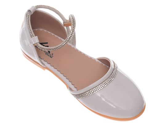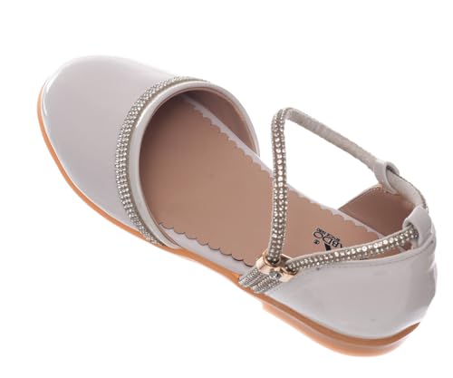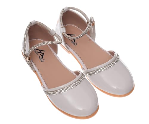 HA - اتش ايه حذاء باليرينا مسطح من الجلد اللامع مع اشرطة هيكلية للبنات