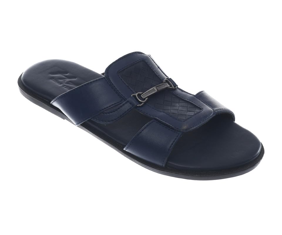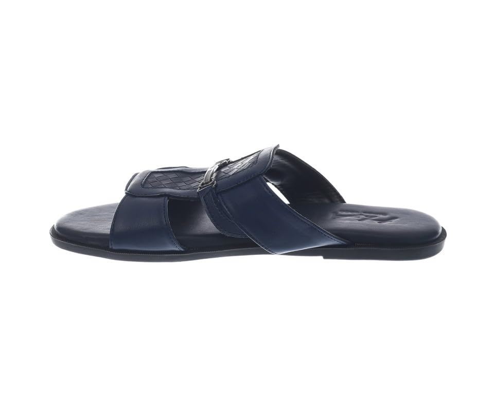 HA - شبشب مسطح من الجلد مع زخرفة معدنية للرجال من اتش ايه