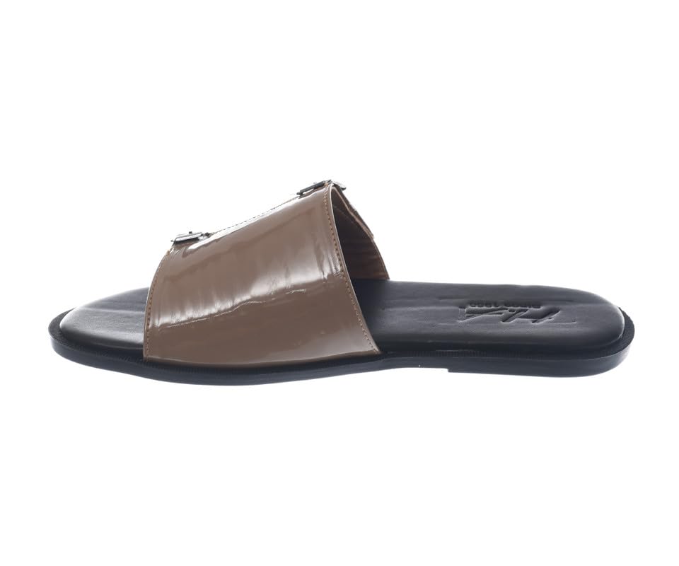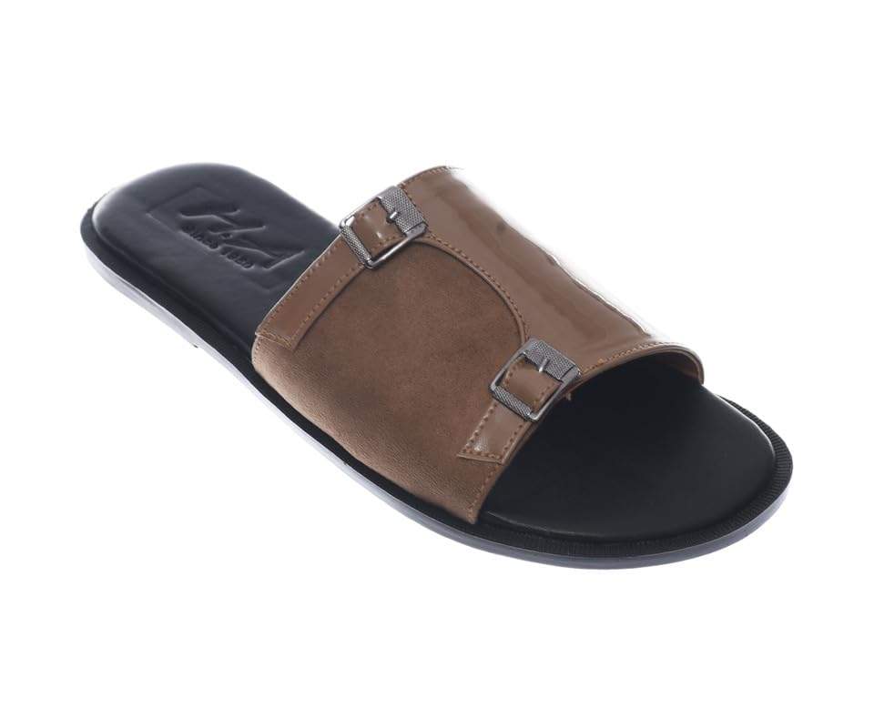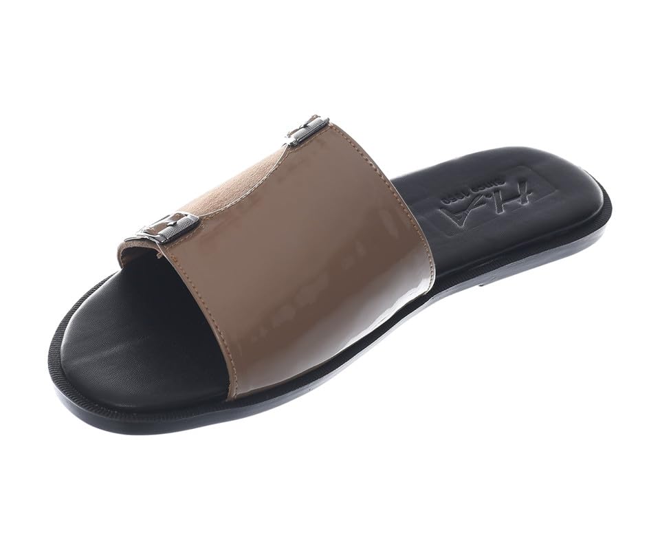 HA - شبشب مسطح من الجلد اللامع مع ابزيم معدنية للرجال من اتش ايه