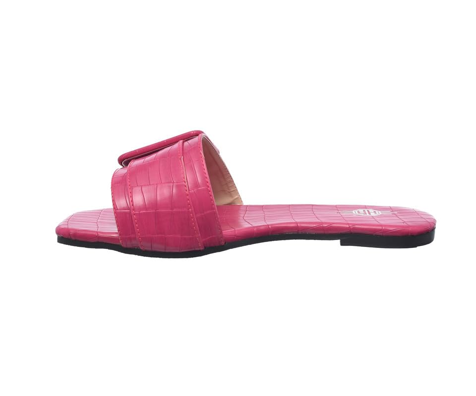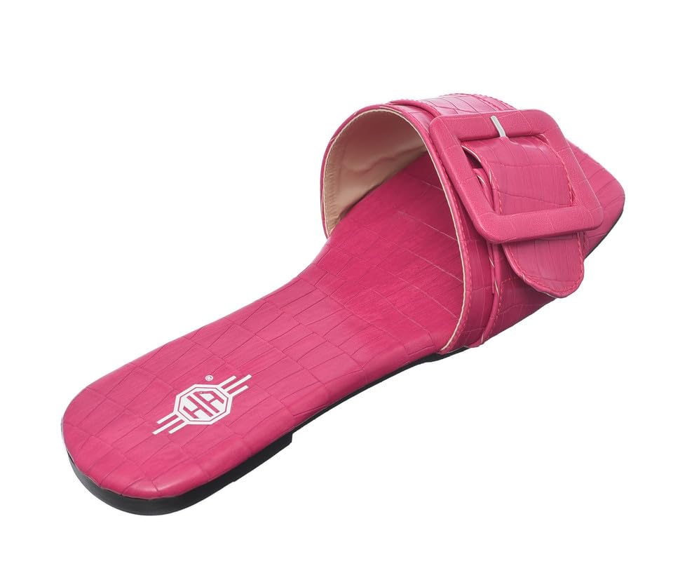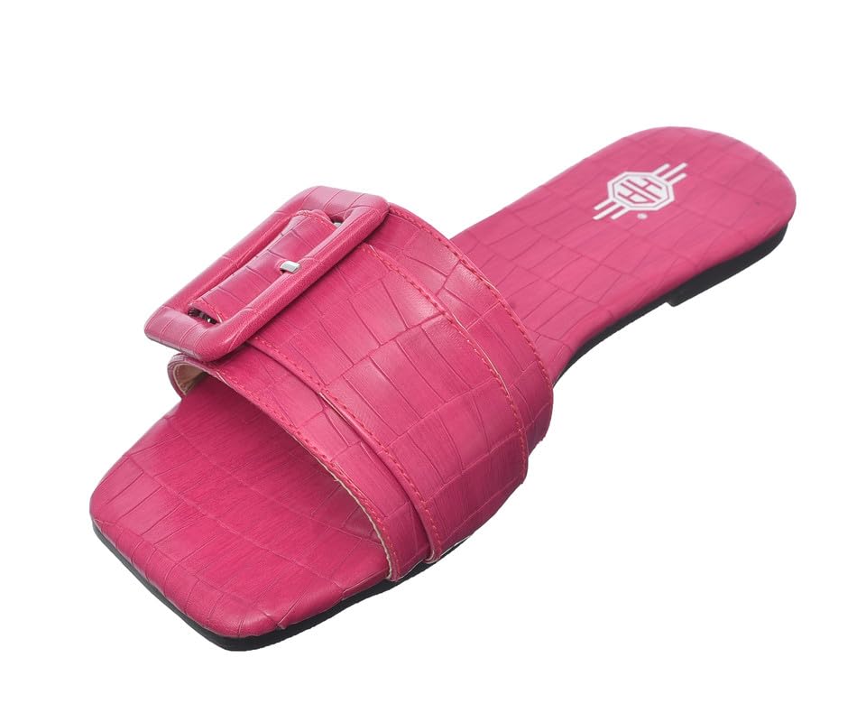 HA - اتش ايه شبشب جلد منقوش بنقشة التمساح مع ابزيم للاغلاق للنساء
