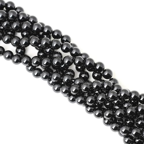 HAAMIIQII - خرزات العقيق الاسود الطبيعي الناعم والدائري شبه الثمين مقاس 6 مم، خرز احجار كريمة بدون فتيل لصنع المجوهرات، تكفي لفتيل بطول 15 بوصة (60-65 قطعة)