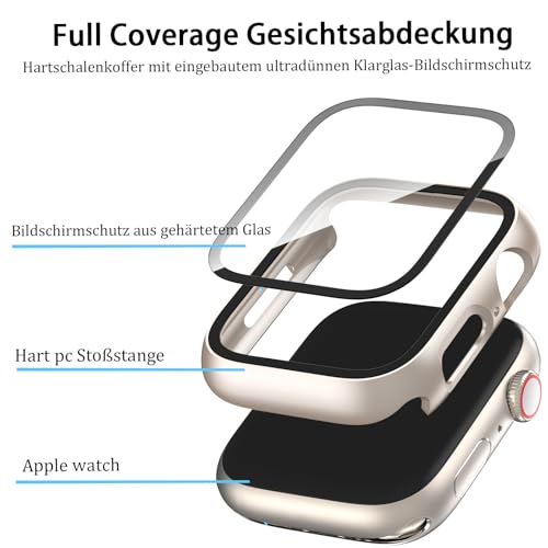 HAANILKYI - جراب صلب مع واقي شاشة لساعات آبل ووتش سلسلة 9/8/7 من HAANILKYI، جراب من البولي كربونات فائق الرقة مع واقي شاشة شامل لساعات اي ووتش مقاس 41 ملم، عبوة من 6 قطع
