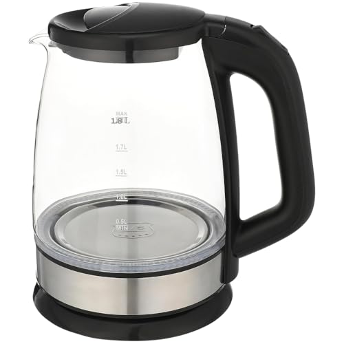 Generic - غلاية كهربائية زجاجية سعة 1.8 لتر من هاشبلين، غلاية شاي كهربائية لاسلكية خالية من البيسفينول ايه، غلاية ماء ساخنة كهربائية محمولة مع حماية من الاغلاق التلقائي، غطاء سفلي من الستانلس ستيل