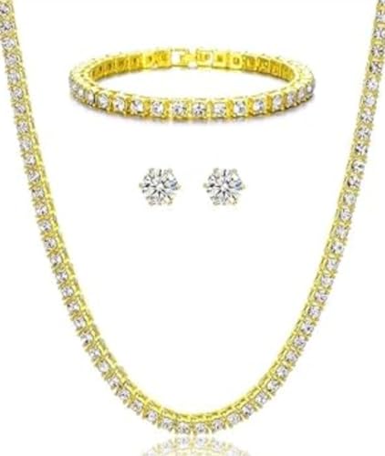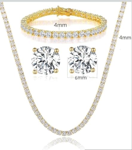 Generic - طقم زفاف مرصع بالزركونيا المكعب مطلي بالذهب الاصفر/الابيض عيار 14 قيراط للنساء من حجر بنات ستور، 3 قطع (ذهبي)