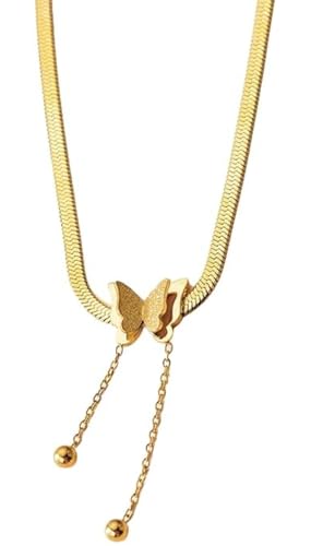 Generic - عقد بتصميم فراشة من الذهب عيار 18 قيراط للنساء من حجات بنات ستور، هدايا مجوهرات أنيقة للنساء من الفولاذ المقاوم للصدأ، قلادة فراشة ذهبية أنيقة مزينة بالخرز