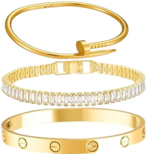 Generic - طقم اساور حلقية للتنس من الستانلس ستيل المطلي بالذهب عيار 18 قيراط من هجات بنات ستور