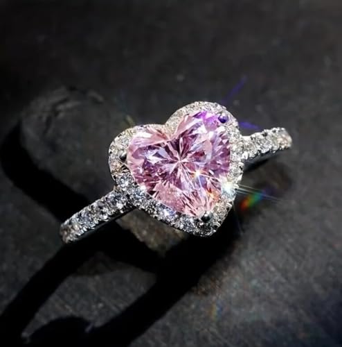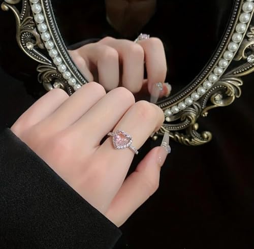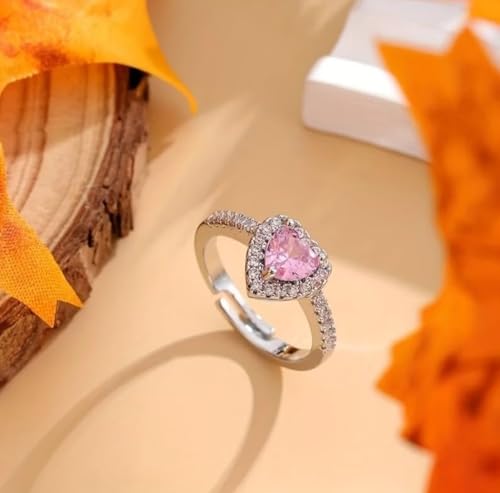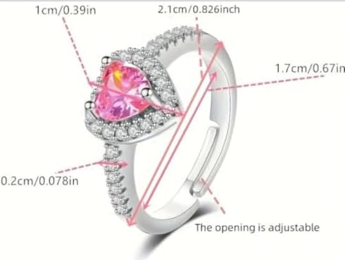 Generic - خاتم بتصميم قلب مفتوح قابل للتعديل للنساء مرصع بكريستال زركونيا مكعب للخطوبة والزفاف والذكرى السنوية للمناسبات المختلفة وعيد الحب واعياد الميلاد (بينك)