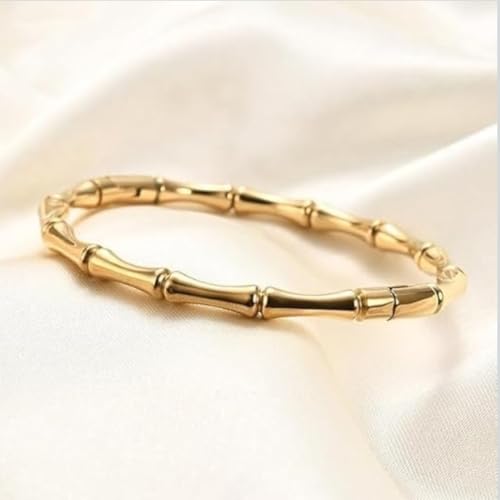 Generic - إسورة عريضة من حاجات بنات بتصميم الخيزران الكلاسيكي، لون ذهبي، مفتوحة وأنيقة ورفيعة وقابلة للتعديل، ومناسبة للرجال والنساء