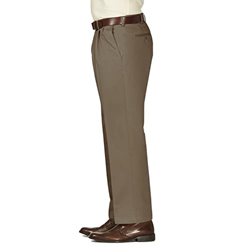 Haggar - بنطلون بطيات وقصة كلاسيكية للرجال للعمل في عطلة نهاية الأسبوع بمقاسات عادية وكبيرة وطويلة من حجار