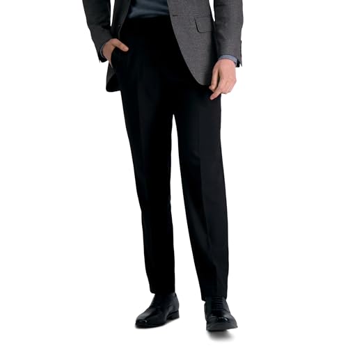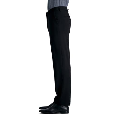 Haggar - سروال رسمي فاخر مريح بقصة مستقيمة ومسطح من الامام للرجال
