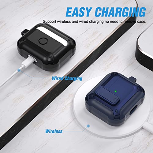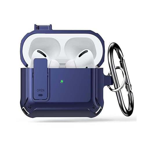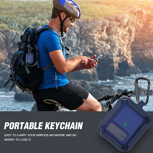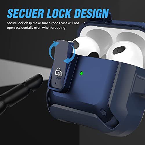 HAGROYO - حافظة حماية لسماعات ايربودز 3 للنساء والرجال، مصنوعة من مادة البولي كربونات مع قفل وغطاء متين لسماعات ايربودز الجيل الثالث 2021، غطاء أمامي ليد مرئي، لون أزرق