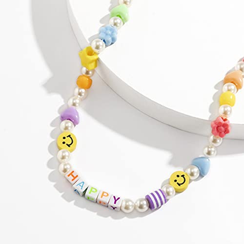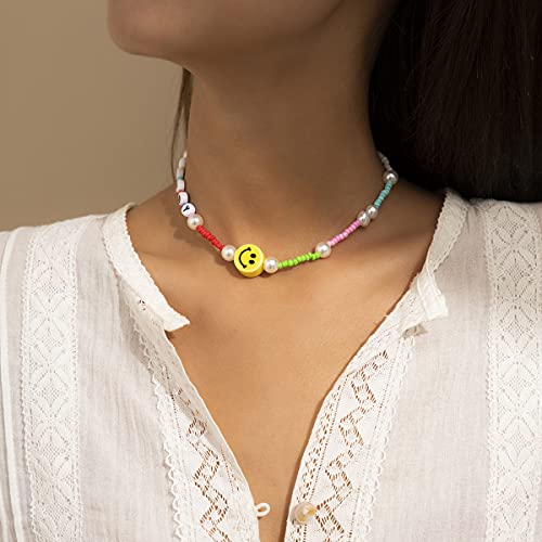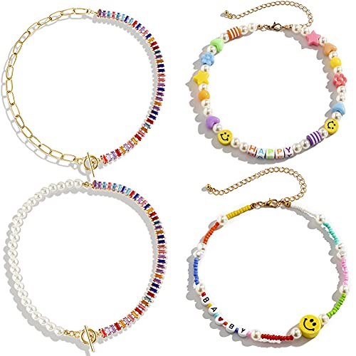 HaHaGirl - 4 قطع من عقد لؤلؤ من الخرز الزجاجي "مرح فليرتي" قلادة شوكر مصنوعة يدويا صيفية بوهو هدايا مجوهرات للنساء والفتيات المراهقات، من هاها جيرل، متعدد الألوان