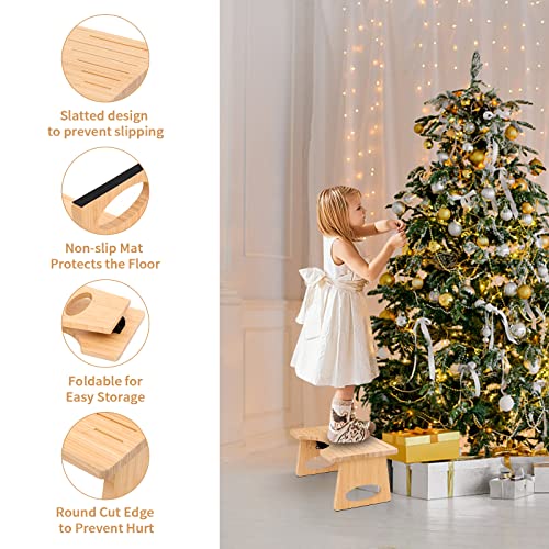 HaHotto - كرسي خشبي مدرج قابل للطي للأطفال، مقعد صغير لحوض الحمام والمطبخ ودرجة لمساعدة للبالغين علي التبرز قابل للطي ومحمول وغير قابل للانزلاق (خشبي) من هاهوتو.